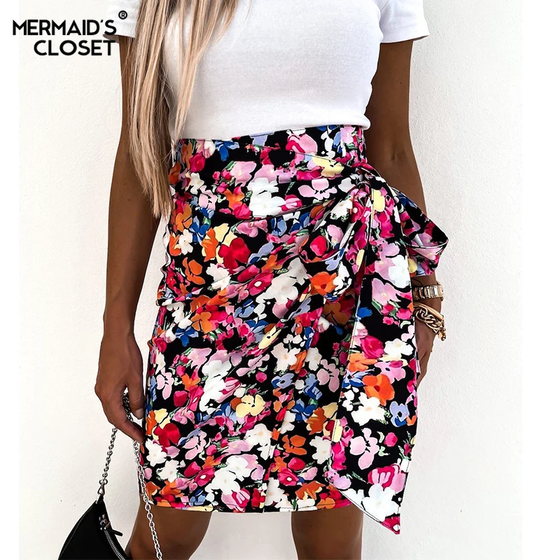 Name: Falda envolvente Floral de cintura alta para mujer, minifalda informal ajustada con estampado de leopardo, Faldas cortas ajustadas irregulares para verano, 2021